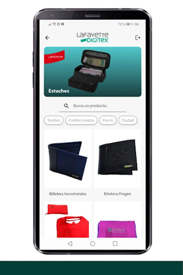It is an application developed for the consultants of the corporate channel of Lafayette Digitex, through this application they will be able to have updated the testimonials that we have developed for different brands. These products can be used as inspiration and as a guide for your commercial management since you will find the textiles, the manufacturer, the quantities and the approximate price of the product. In the Marketing Tool, you will find a section of allies, where you can view a directory with the data of our manufacturers, from here you can contact them by phone and/or mail and you can see the flagship products of our allies.