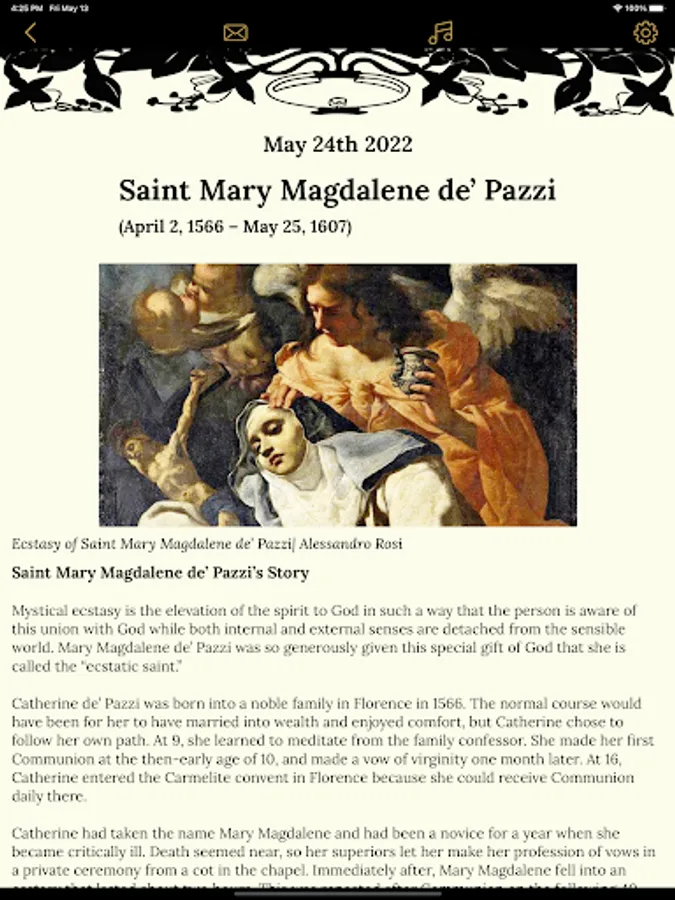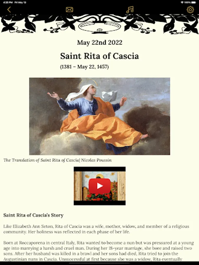 "Love this app a saint for every day with great detail about their life well worth downloading" - Teri mcg, GB