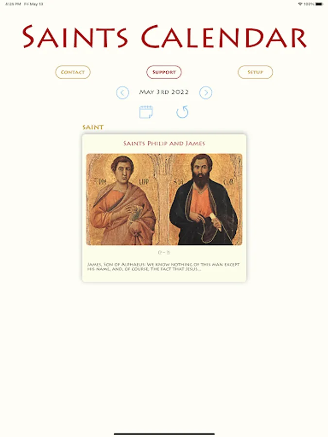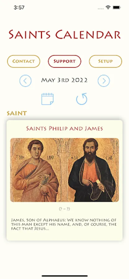 With Saints Calendar app you can inspire yourself with the saint biographies, quotes and comments. Every day you can read about an unique Catholic Saint and importance of holy men in our own life. We have also included audio and video tracks about every Saint as a bonus - Internet connection is required.