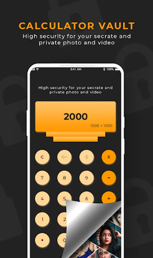 This Calculator Vault app is designed as simple calculator. This app open only by secret code that is set by you otherwise it functional as simple calculator. This way no one knows your mobile had installed picture, video hide lock app and you can secretly hide pictures to keep safe from others by this Smart vault app
