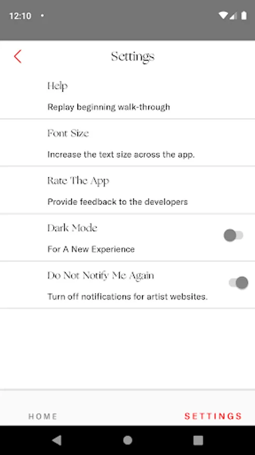 The app comes with a Dark Mode setting and font size adjuster to fit your preferences.