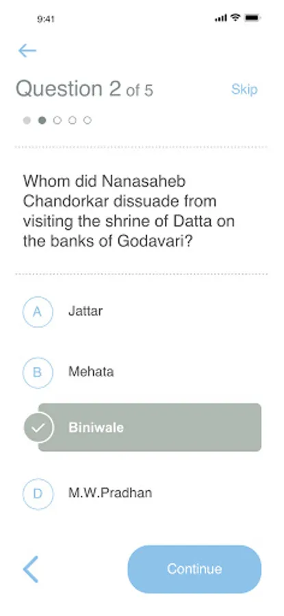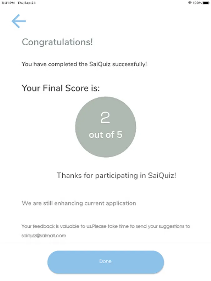 The SaiQuiz app offers quizzes in Daily-, Practice- and Event-based formats. The Daily Quiz gets refreshed every day with new questions at 6:00 AM IST. Individual progress can be tracked under ‘Personal History’ for the Daily Quiz. The Practice Quiz can be retaken multiple times until one feels confident to attempt the Daily Quiz. During special occasions, an Event-based quiz will be available with a broadened scope to include various other books on Sri Sai Baba.