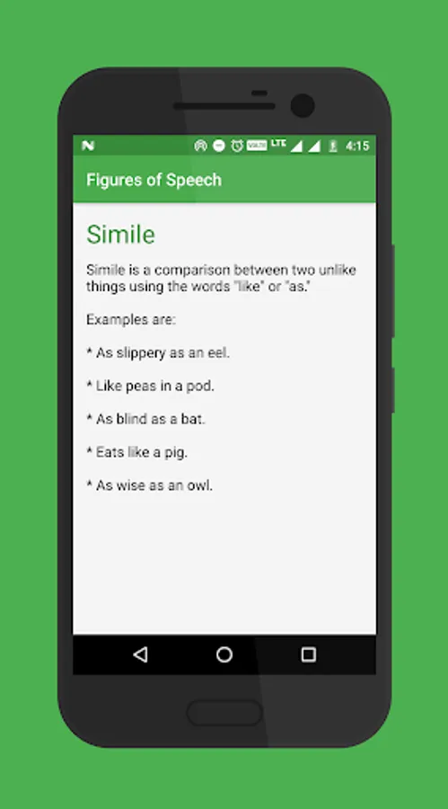 Figures of Speech provides you the most used figures of speech in grammar, each explained with proper example. Moreover, it is totally free!
