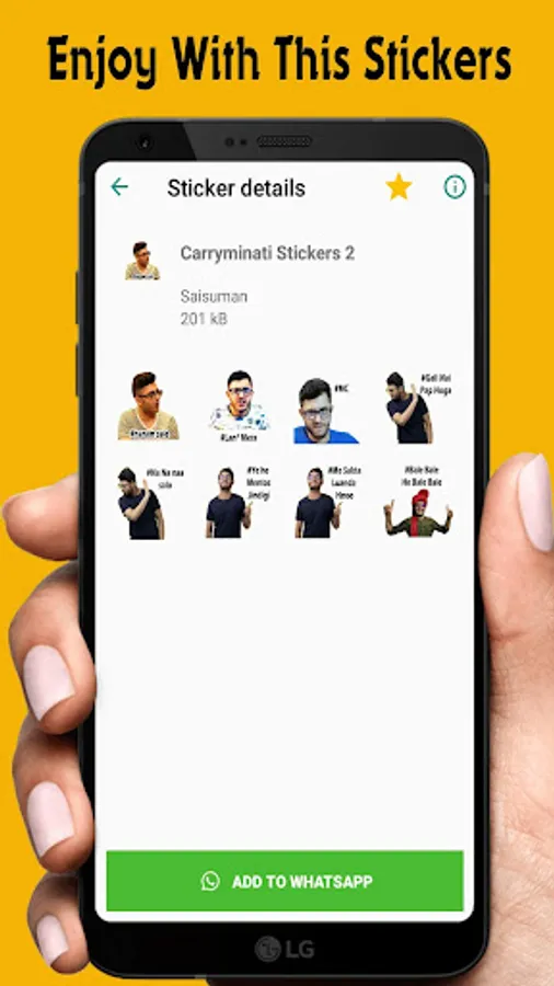 New carryminati whatsapp sticker are updated as possible as soon.carryminati new stickers will be very funny and its like carryminati the thug.wastickerapps of carryminati is a collection of sticker of carryminati.carryminati stickers whatsapp is used for only funny purpose not for hurting to someone.