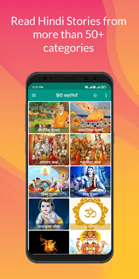 Hindi stories containing 1000+ interesting stories. Wonderful story about god, festivals, motivational stories, akbar-birbal, tenali raman stories, panchtantra, story, moral stories, funny/comedy, motivational, hindi novel/upanyas, educational, dadi nani ki kahaniya , lok kathayen, kisse kahaniya, kathayen, Animal, success, life short story, amazing and unique stories etc. and much more.. Download now.