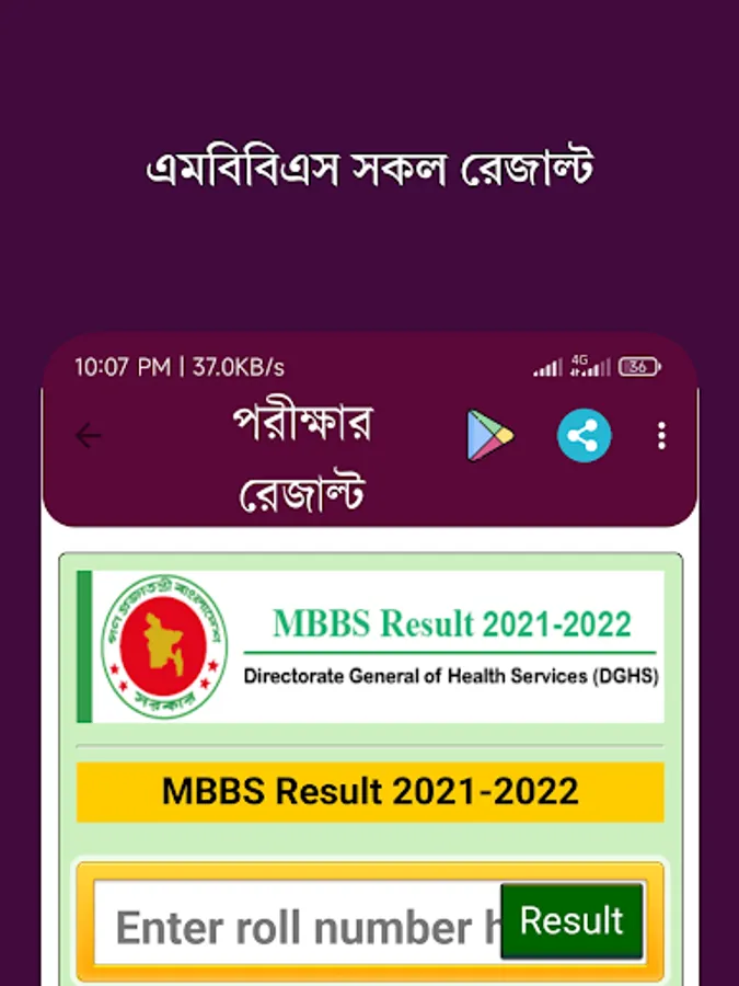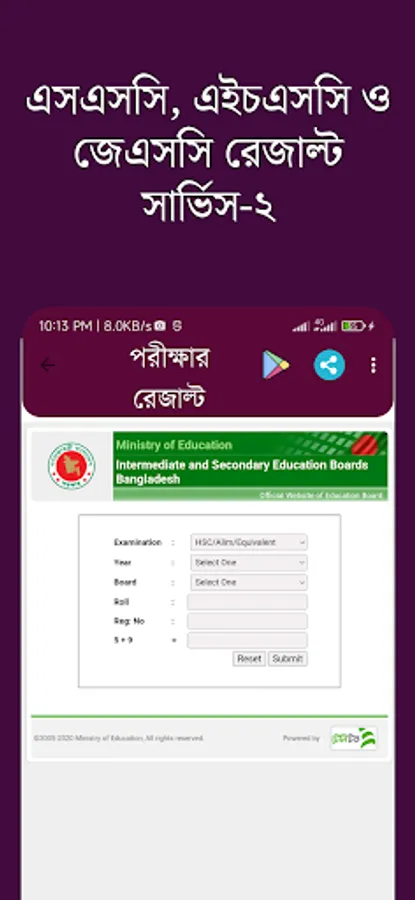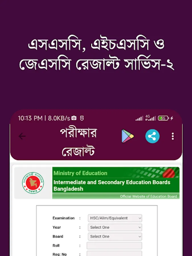 পরীক্ষার রেজাল্ট /JSC/SSC/HSC Screenshots