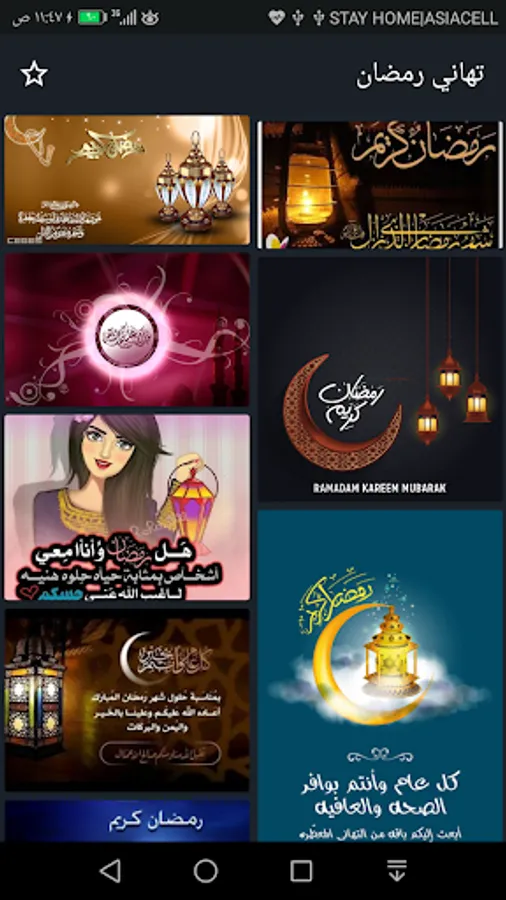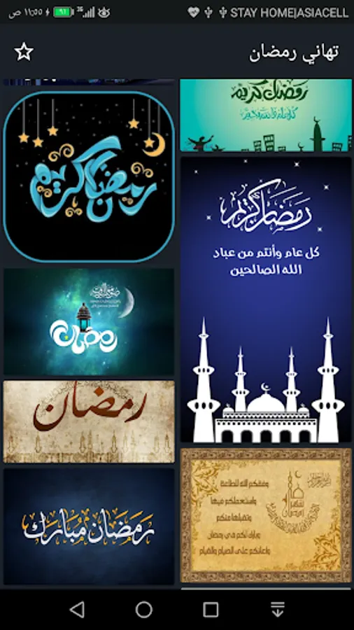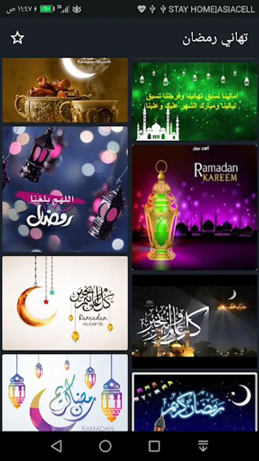 The application includes a large collection of images of Ramadan congratulations and congratulations.