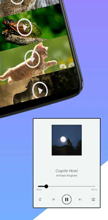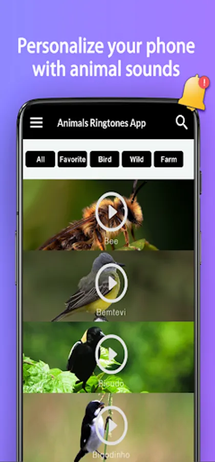 Choose a free ringtone, notification or alarm from over 100+ high density (HD) animal sounds and surprise your friends with lion roar, rooster coronation, cow mooing, dog barking, cat purring sounds, birds chirping, and many other animal sounds. others as free ringtones for your android phone.
