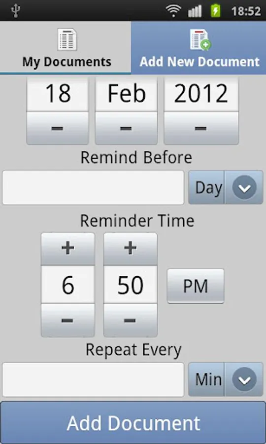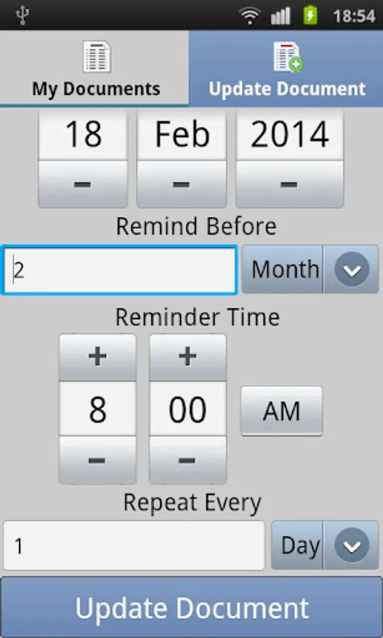 - You can set the expiry date, remind before period, repeat pattern.