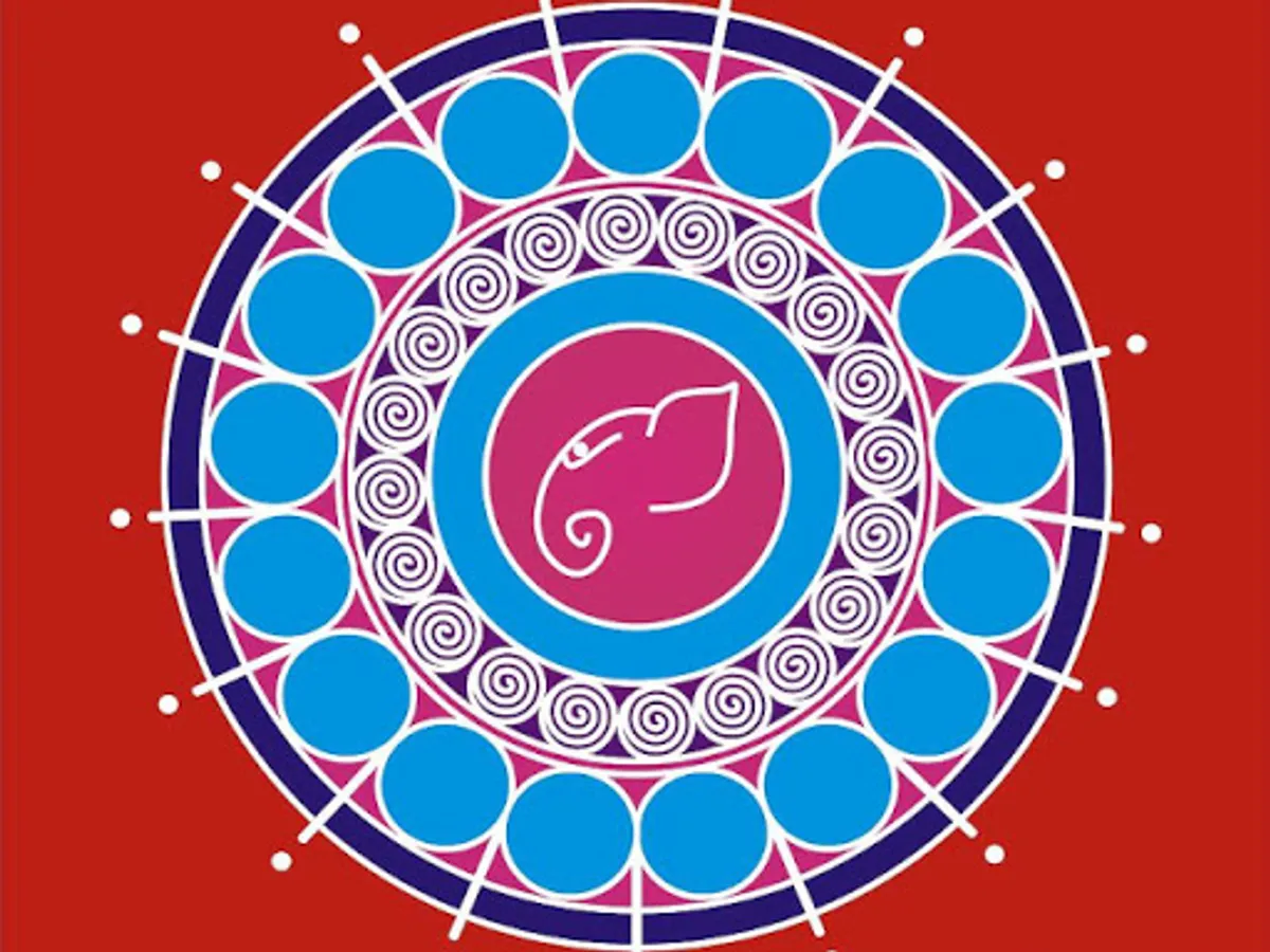 Rangoli is an art form, originating in the Indian subcontinent, in which patterns are created on the floor or the ground using materials such as coloured rice, coloured sand, quartz powder, flower petals, and coloured rocks. It is usually made during Diwali or Tihar, Onam, Pongal, Sankranthi and other Hindu festivals in the Indian subcontinent. It is made mostly during diwali. Designs are passed from one generation to the next, keeping both the art form and the tradition alive.
