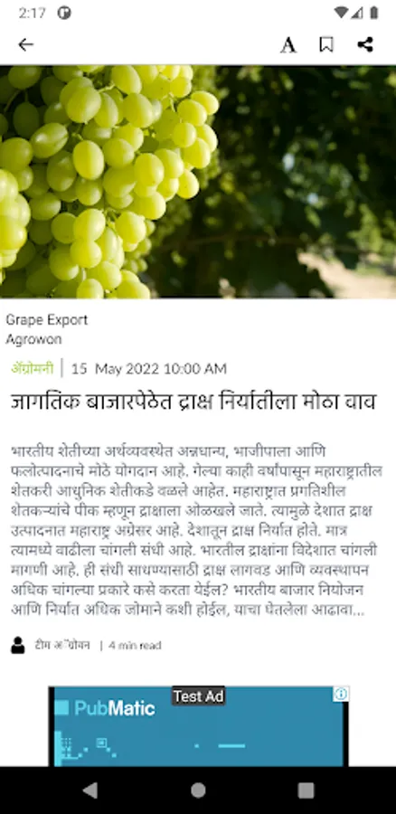 The objective of equipping farmers with factual information on the latest technology to make them globally competitive and help them increase their per capita income. Agrowon has achieved a whopping readership in print as well as on the Digital platform. The brand's popularity is growing with huge responses from farmers.We look forward to growing with the mobile app medium. This popularity is attributed to Agrowon’s sensible and in-depth reporting of agricultural issues and rural development. It is the authoritative medium pertaining to all aspects of Agriculture. New trends, better practices, and the application of futuristic technologies are presented lucidly. The coverage includes core farming, agricultural produce market as well as Agro based activities like dairy, poultry, and fisheries.
