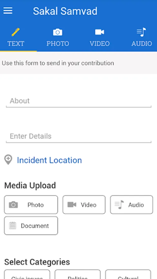 - Citizens can submit their stories in text, photographs, video and audio format to Sakal Media Group.