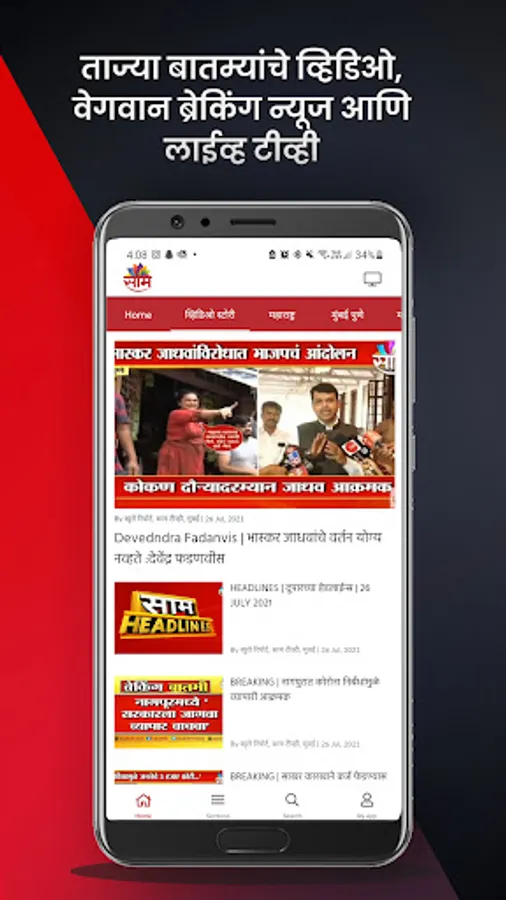 Download the Saam TV live news channel app to be up to date with all local, national and international news and all the latest news in Marathi.