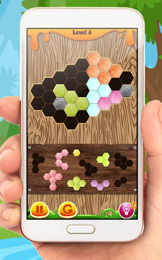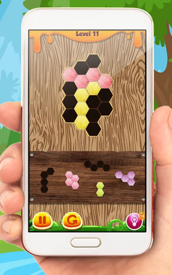 - Try to fit them all in the row or column. Then the wood blocks will be clear and you get points. The game will be over if there are no room for any the shapes below the grid.