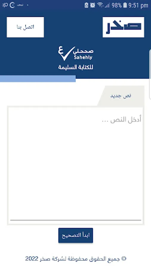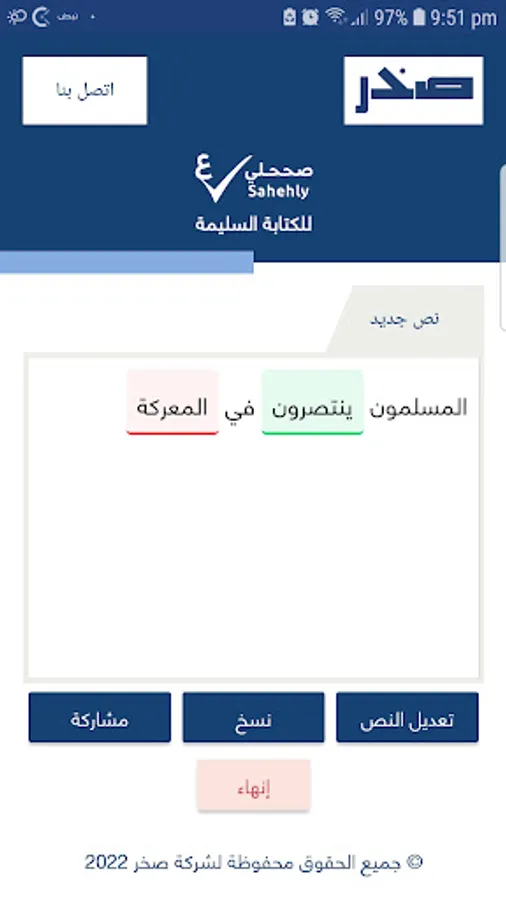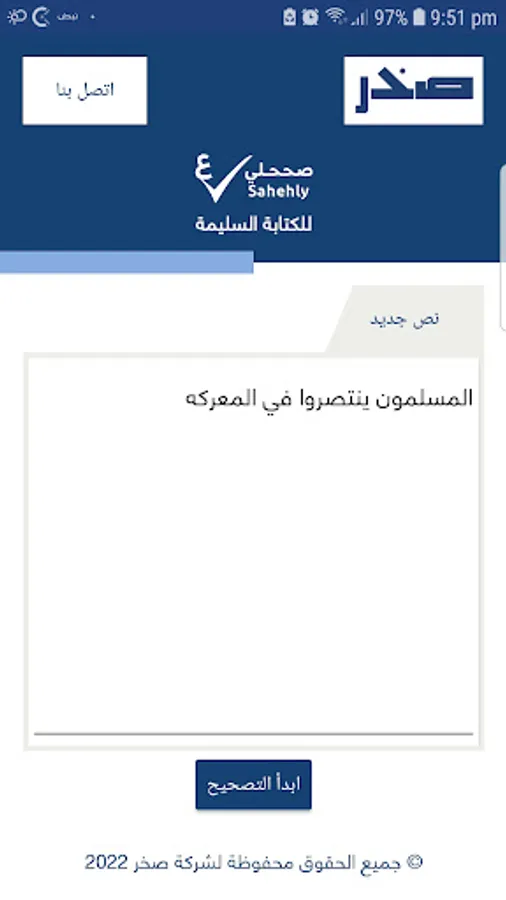 Correction is a new tool from Sakhr language tools. The tool checks Arabic texts with high accuracy. This technology relies on the use of artificial intelligence on a set of spelling and grammatical rules of the Arabic language, through which the correct spelling form of the word is deduced. It also depends on the multiphasic morphological analyzer that Bent Sakhr, based on a lexical database of Arabic vocabulary.
