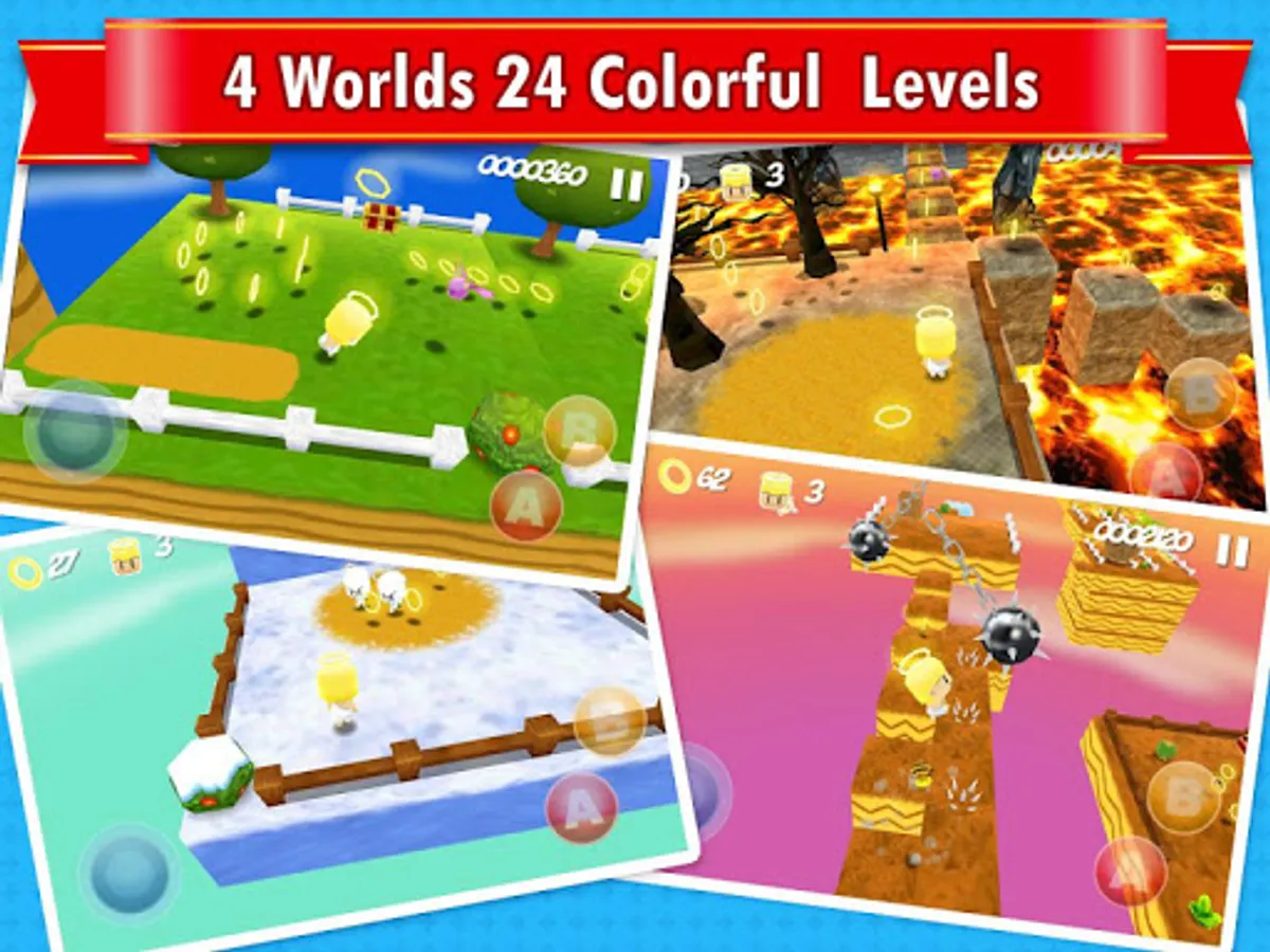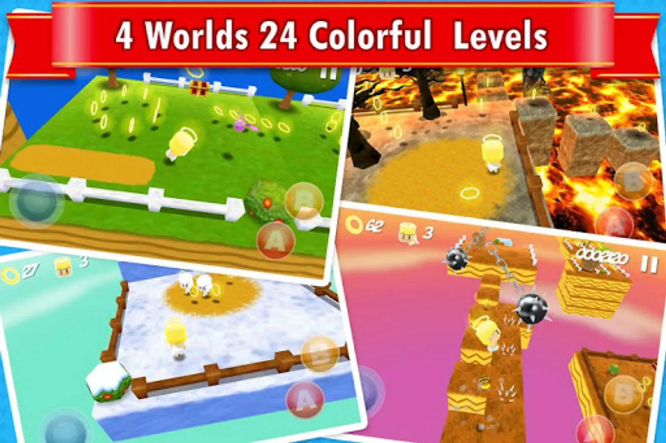 Run and jump through 4 Worlds all packed with different and carefully designed levels.