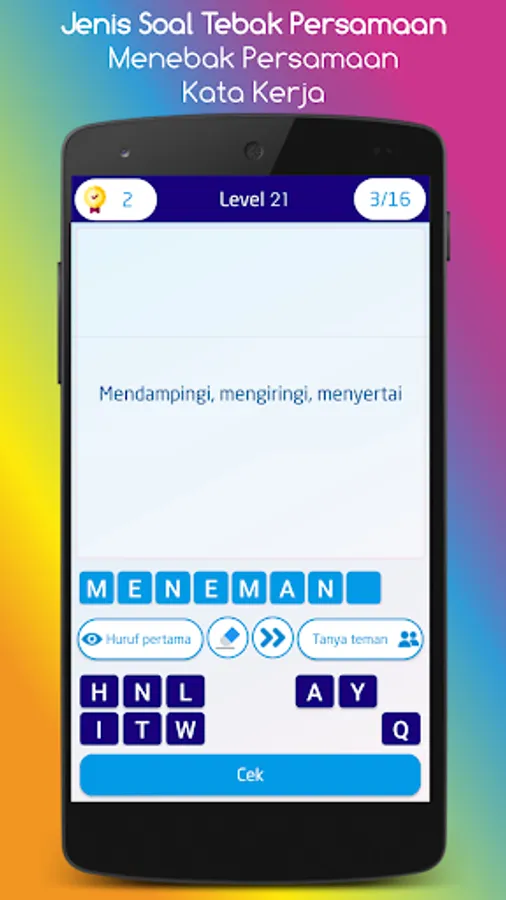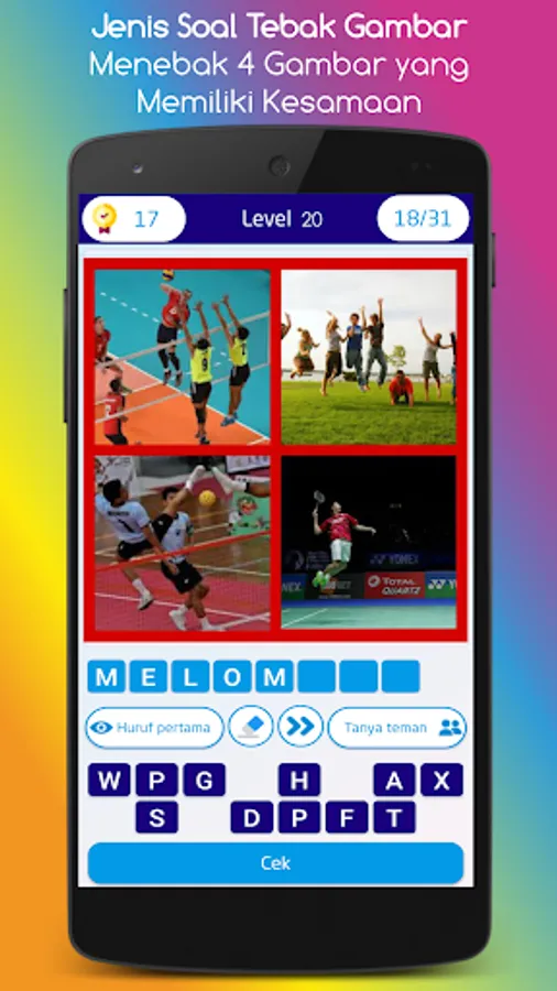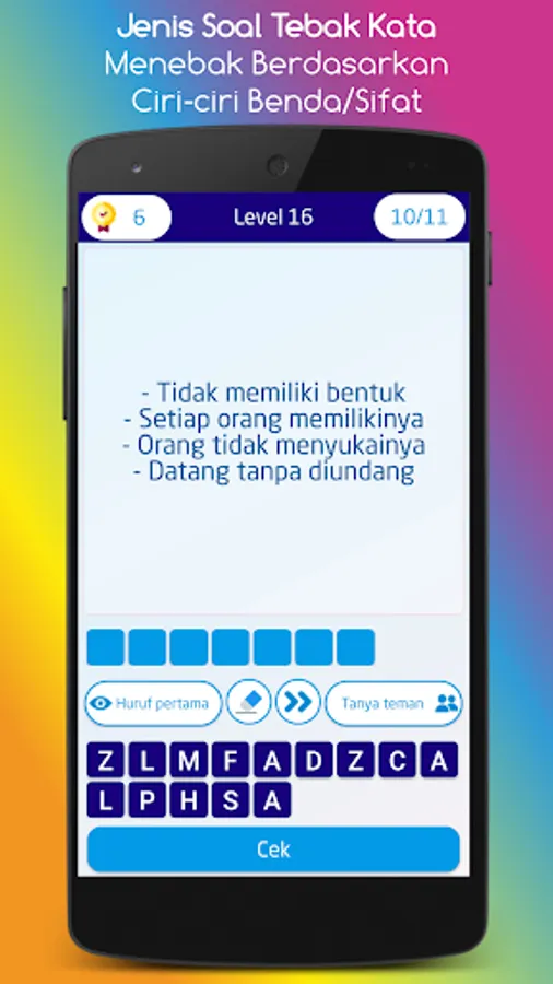 There are hundreds of word guesses that you will find in this game, both general knowledge about Indonesia and about the world. Suitable for all circles from junior high school, high school, college students and the general public.