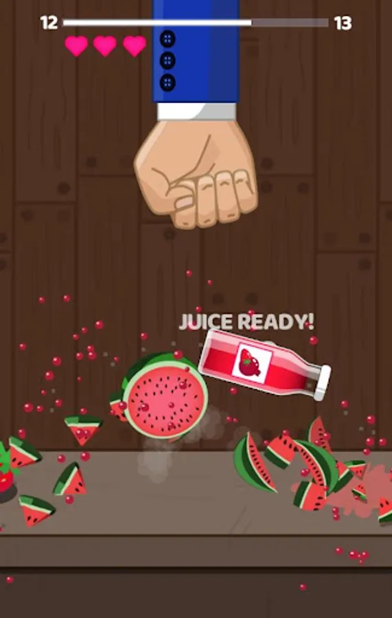 An arcade game where you must destroy fruits, objects and bombs! You will have your own juice factory where you can sell the juice from the crushed fruits. This casual game is a fun way to relax and enhance your reflexes. Improve your skill and become a true fruit destroyer! Controls are simple and convenient, just tap on the screen at the right time to crush the fruit. Oh, and beware of bombs!