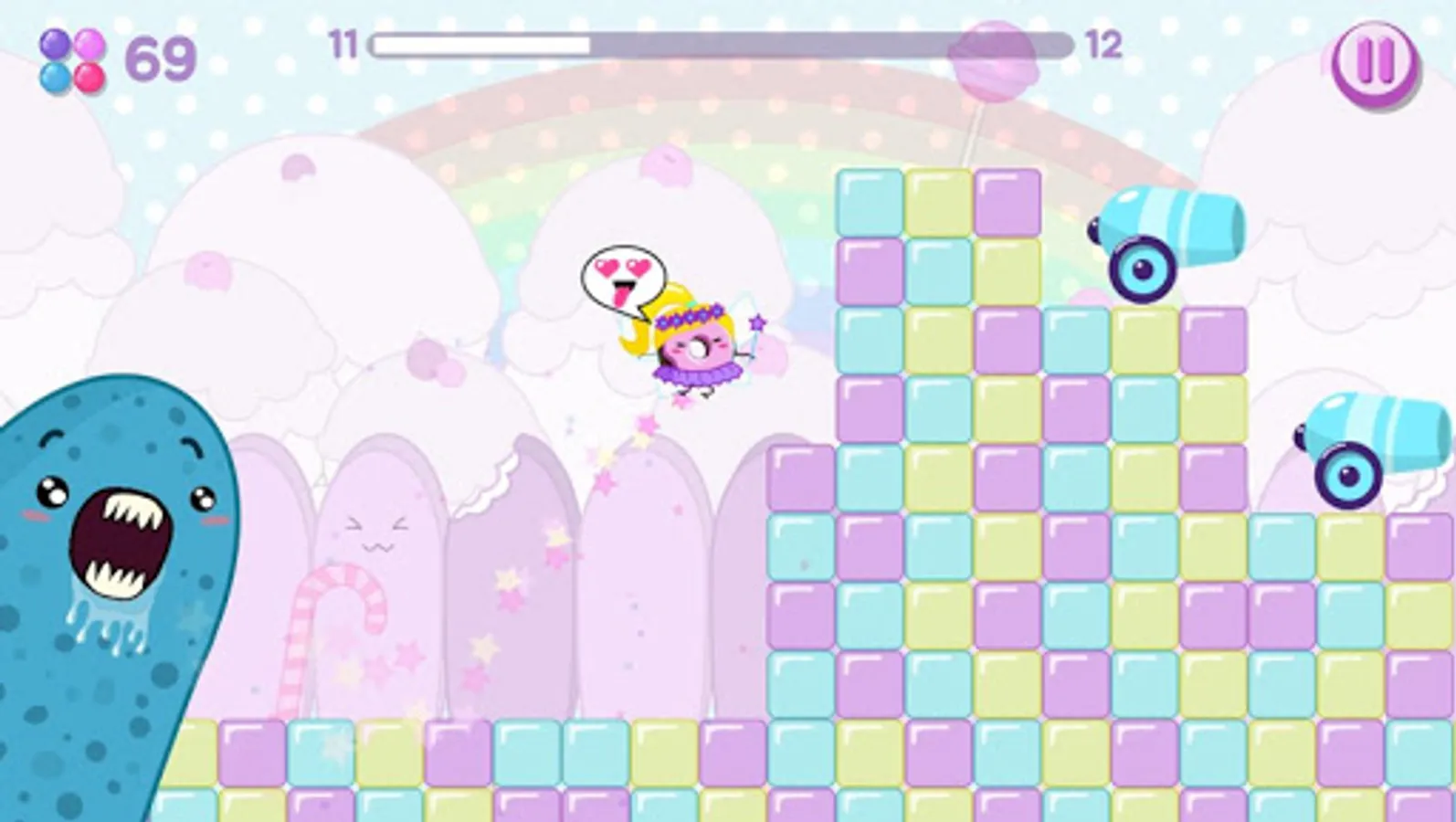 Locations will constantly surprise you and make fun, thanks to the original graphics. The game focuses on the kawaii style gaming, which means, that you will be surrounded by sweet, cartoon characters, connected with sweets. The runner will have to run, jump and slide among cakes, candies, jams and bakery, with which the arcade is filled in, though the runner will have to concentrate on puzzles and obstacles.