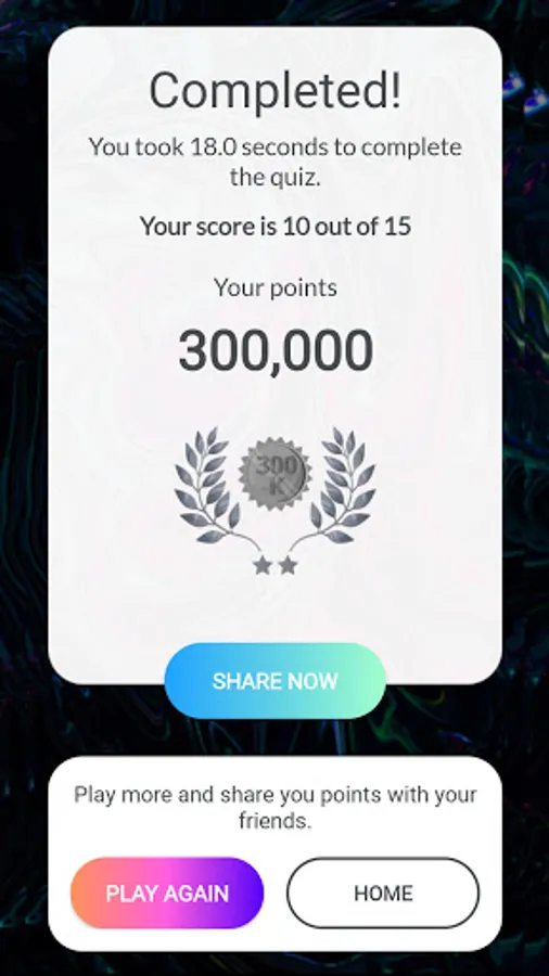 After quiz finishes, you can share your rank and points with your friends and play again to
