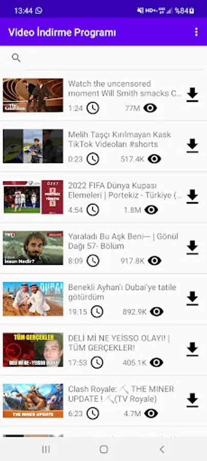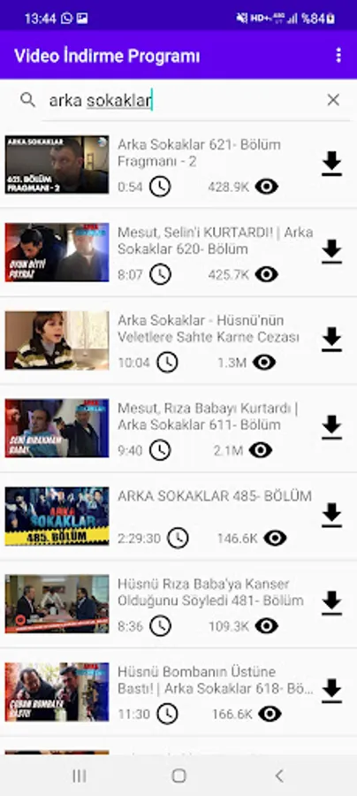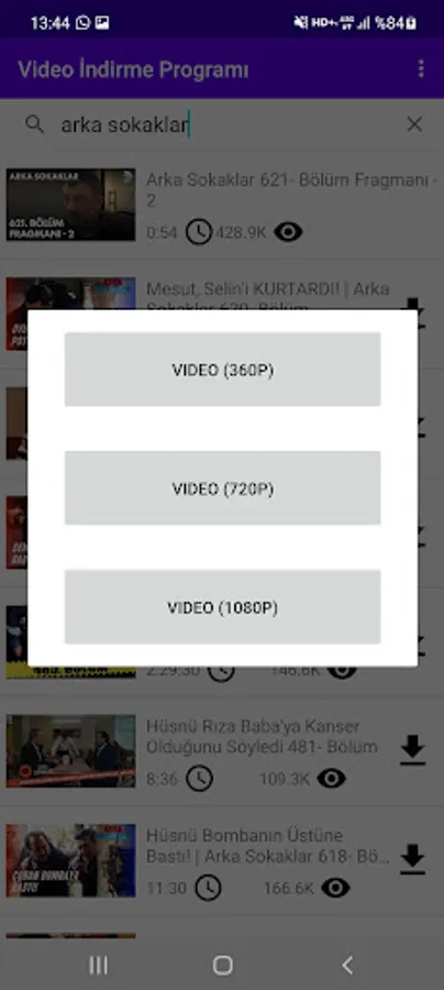 With the HD video download program, you can download the video you want to your phone and tablet in HD in 360p, 720p and 1080p formats. Type the name of the video you want in the search bar and download it in the format you want from the list.