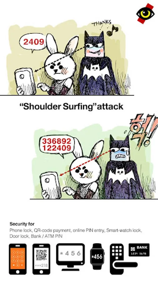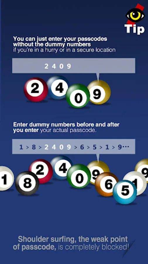 ※ Although your actual passcode is only 2~4 digits long, what others will see is over 9 digits of numbers - making it nearly impossible to memorize!!