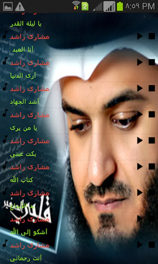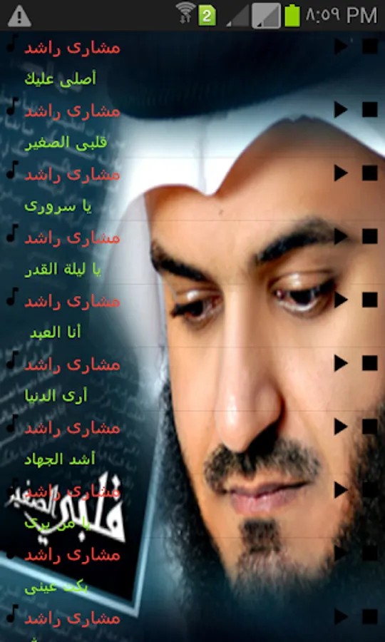 تطبيق ألبوم قلبى الصغير يحتوى على أناشيد لمشارى راشد مثل قلبى الصغير وأنا العبد وليلة القدر