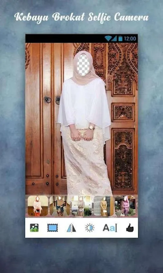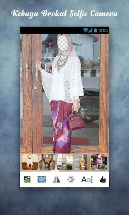 Are you confused to find a modern brocade kebaya that fits your desires? Kebaya Brokat Selfie Camera Editing a photo wearing kebaya brocade dress, make it easy to wear kebaya dress by editing your face into frame kebaya brokat modern, because application Kebaya Brokat Selfie Camera photo editing that has a lot of choice kebaya brocade frame, this application allows you to find reference kebaya suitable for wearing during the event invitation or a regular day with brown kebaya mamaikai.