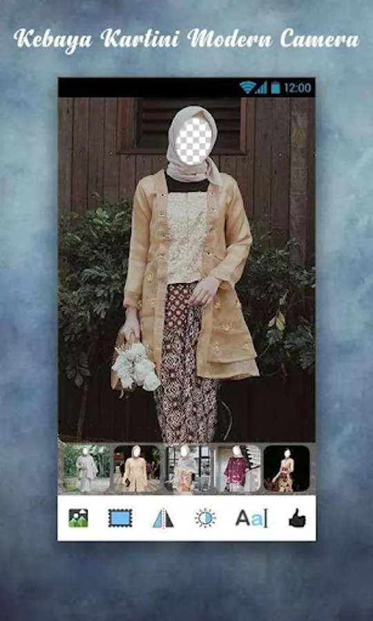 Kebaya Kartini Modern Camera is a photo editing application that uses kartini kebaya frames modern, allows you to wear kebaya kartini dress just by editing your photo with ease, you need not complicated in looking for kartini kebaya reference for the upcoming kartini day, because this application has many collection frame kebaya kartini dress that you can use to edit your photo. Collection of latest kebaya dress and current trends found in this application. you do not need to be afraid of the fashion style of the ancient and outdated, because the updated application about kebaya kartini modern dress is Kebaya Kartini Modern Camera