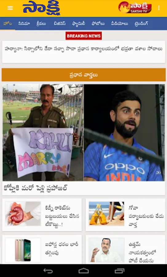 Sakshi Android Mobile App a user-friendly mobile application gets you in-depth coverage and follow-up stories from a battery of veteran journalists - on local, national and international events; on moments that make and mar history; on a smart, cool site designed for people on the move and others across all ages and interests.