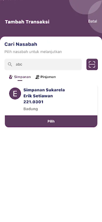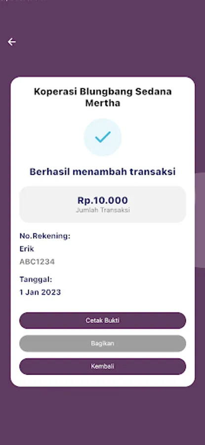 Mobile-based application to make it easier for Blungbang Cooperative Sedana Mertha Collectors to carry out daily transactions. This application is equipped with a customer search feature by name, no. account, location of residence, as well as savings transaction input. With this e-collector application, transactions can be recorded directly.