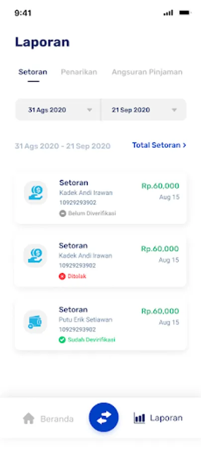 An android based mobile application to make it easier for Koperasi Mitra Karya collectors to carry out daily transactions. This application is equipped with a customer search feature by name, no. account, location of residence, and input of savings and loan transactions. With this e-collector application, transactions can be recorded directly.