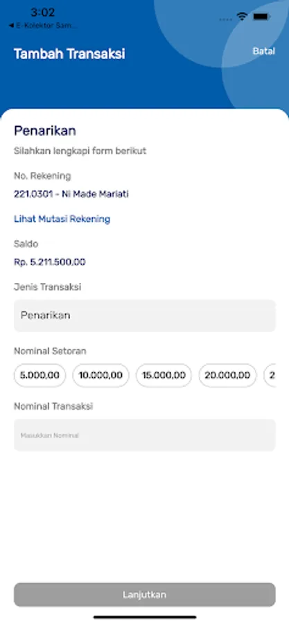 A mobile-based application to make it easier for Samudra Harta KSP collectors to carry out daily transactions. This application is equipped with a customer search feature by name, no. account, location of residence, and input of savings and loan transactions. With this e-collector application, transactions can be recorded directly.