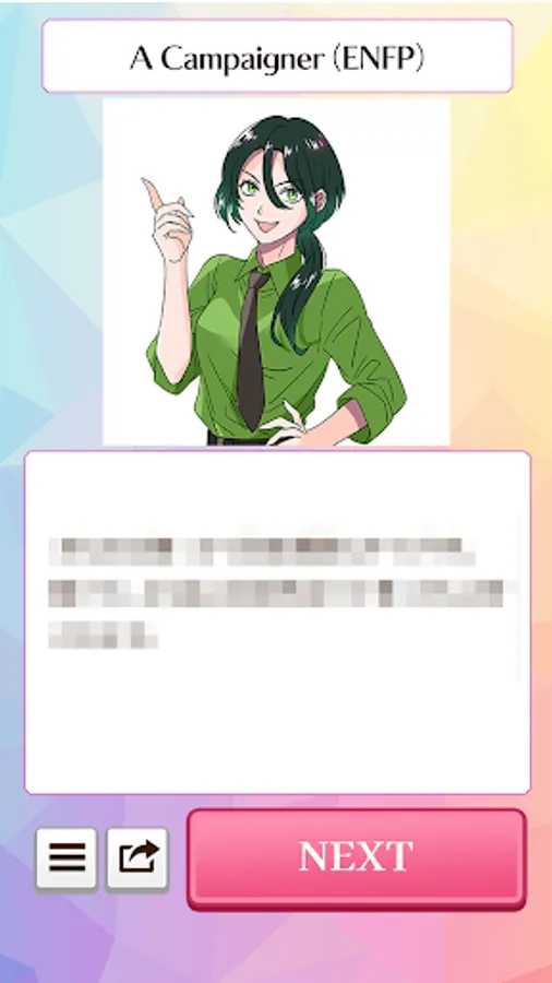 The”16 personality test in a snap”is a personality test that classifies your true self into 16 types based on psychology and economics.Unlike typical ‘16-Type Personality test’ ,The game is simplified by tapping on illustrations, allowing easy and enjoyment for the personality test!