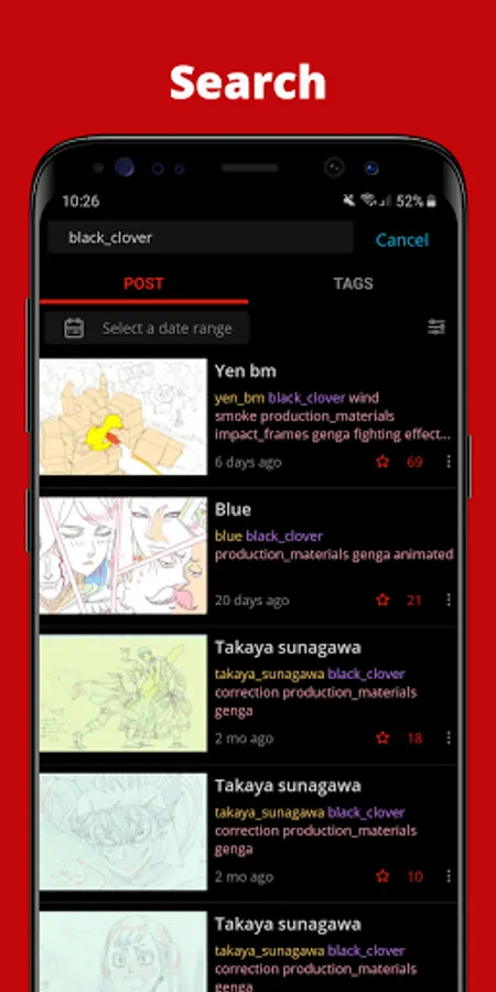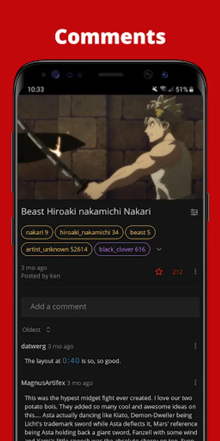 Sakuga Mobile helps the sakuga community and artist who work on this scenes by adding some features to the sakugabooru expierence like: