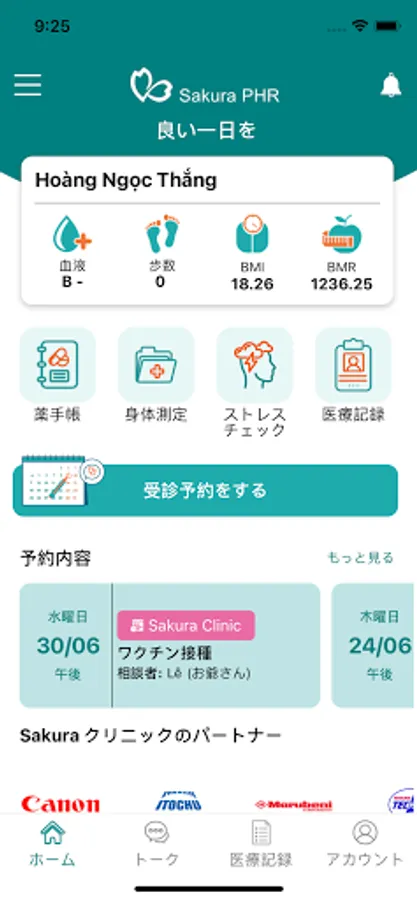 Sakura-PHR is a pioneering electronic health application that provides healthcare services to Japanese people who live, work and travel in Vietnam. We hope that you will be able to accompany your trip to care for and protect your health not only during your stay in Vietnam but also when you return to Japan. Sakura-PHR makes it easy to monitor your health, search your medical history, and book appointments without having to keep medical records or related documents. Whether you return to Japan or move to another country, we provide total solutions for remote health management anytime, anywhere.