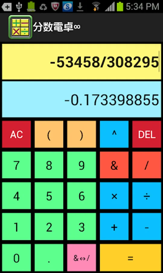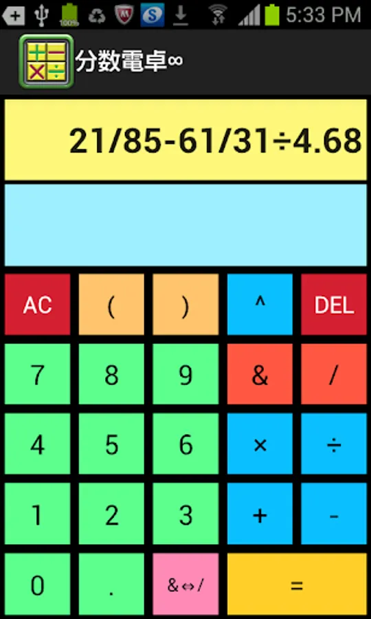 整数、分数、小数、指数の四則混合計算や括弧付き計算が出来る分数計算機です。