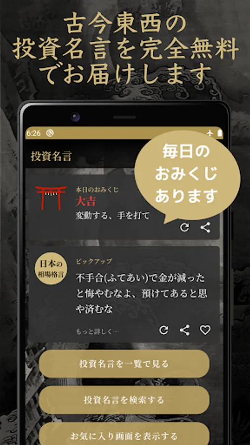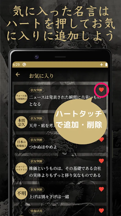 ○ You can check the quote from the favorites screen at any time by adding it to your favorites.