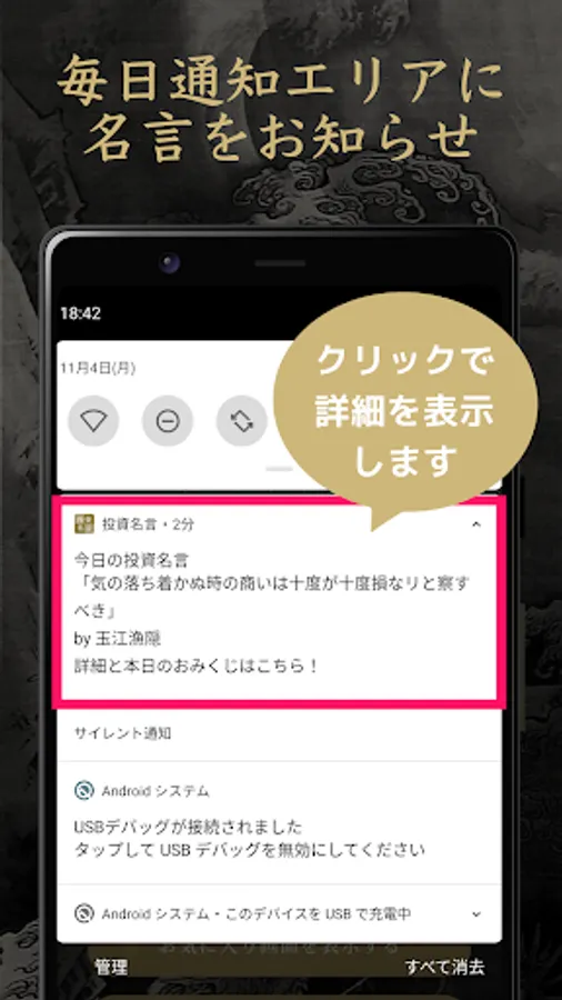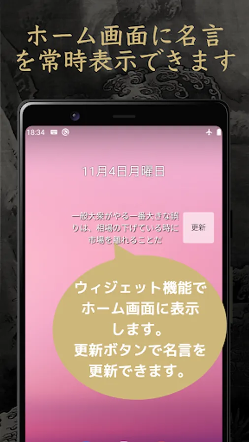 Quotations will be delivered to the notification area once a day. (Can be switched on / off by setting)