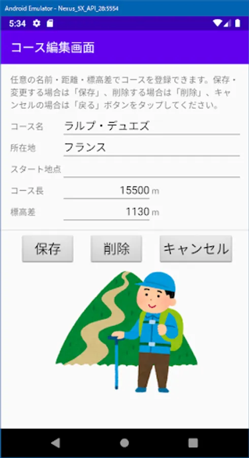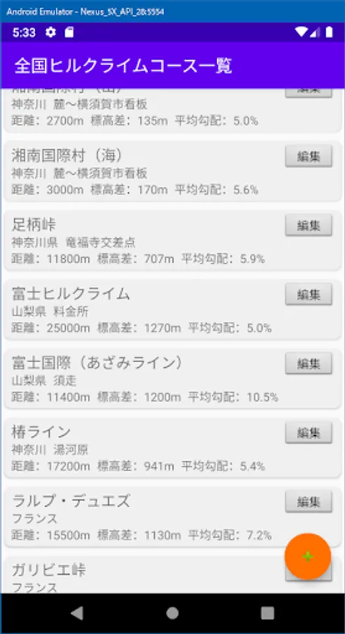 コースの長さや標高差を設定して切り替えることができるので、よく行くコースや大会データを入れておくと便利です。(なんとなく有名なコースは事前に入れてみました