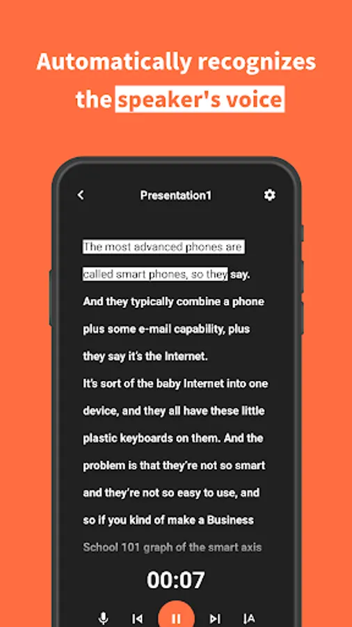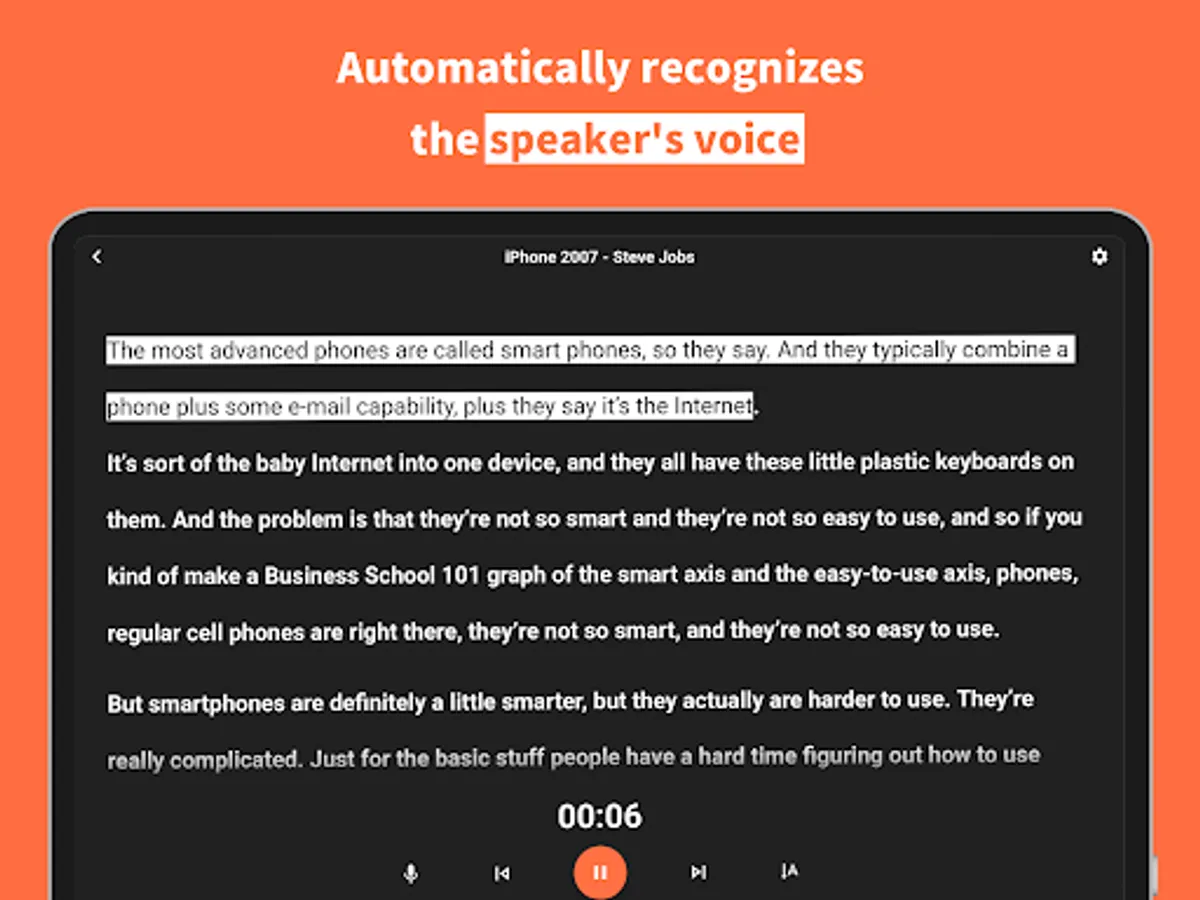 It automatically recognizes the speaker's voice and shows you at a glance how far you have read.