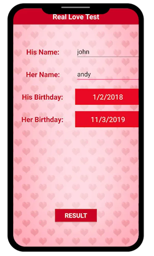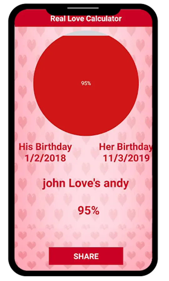 Play this free love test calculator app on your friends, your beloved partner or share your love match result with them by sharing it.