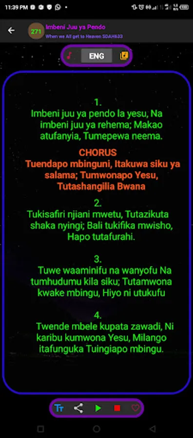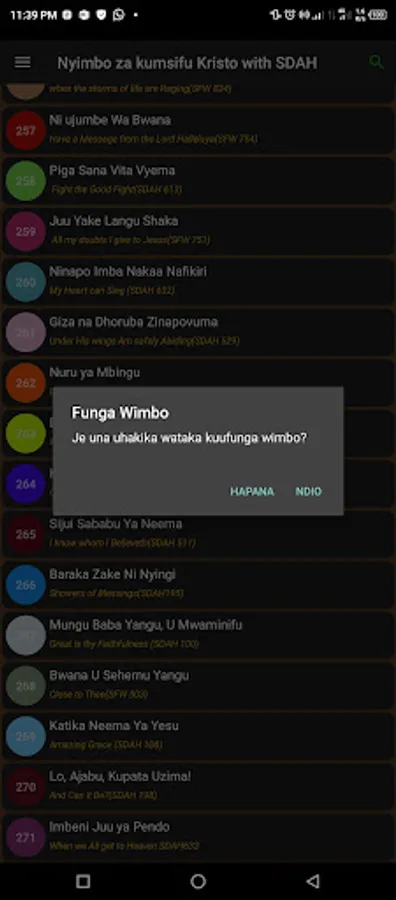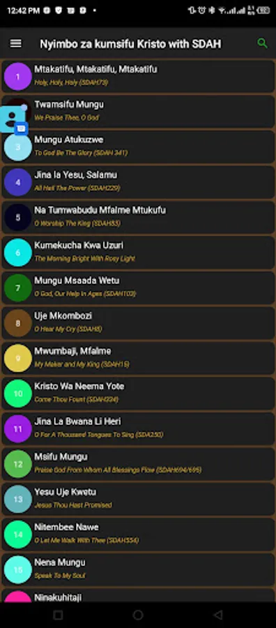 Nyimbo za Kristo with SDAH is an app that is actually a collection of 271 Swahili hymns and an additional SDAH with 952 hymns from Songs for worship (SFW). The Swahili hymns are arranged in their numbers corresponding those of the Nyimbo za Kristo song book with an additional of 51 songs totaling 272 from the known 220 hymns. The English Hymns are also arranged with numbers corresponding those of the SDA Hymnal with additional 257 hyms totalling 952 from the known 695 hymns. The app has pleasant features including an easy to use interface that is beautifully designed. Other features include: Musical notes for the Swahili hymns, Audio files for the hymns that are available for live stream or download, midi tunes for the hymns, sharing option for each hymn, pop up menu that displays the English version of the Swahili hymn, among other intuitive and interesting features.
