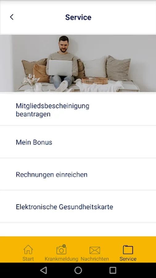 Our online service whether at home or on the go. We offer you: Your personal message mailbox for encrypted communication with us. You can easily change your online data, such as your address or bank details. You need a certificate of membership? Also you get directly into your secure message mailbox. Their absence from work, you can take a picture with our app and encrypted via the app send to us. You've got a stock maintenance certificate for a family insured relatives? Fill this out shortly online. Even an accident questionnaire you can fill us online. Is your health card card defective or has been lost? No problem simply order a new online and receive them within 10 working days comfortable home. To issue an electronic health card, we need a current photo, simply snap a Selfi in our app or upload an existing image, done.