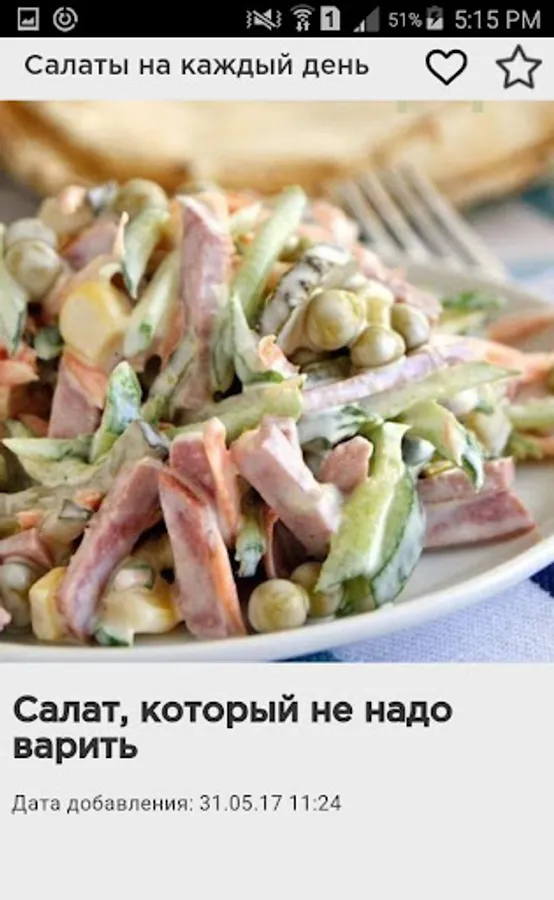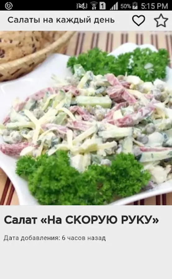 The application "Recipes for salads" you will find a variety of recipes. Salads can be prepared as a vegetable, and fruit. There are also a large number of interesting decisions of meat, cheese, seafood. Proper selection of salad ingredients can sometimes from simple ingredients to create a true culinary masterpiece. For example, take a simple combination - a carrot, apple, sour cream - and you on the table will be a great "fast" appetizer, simply delicious salad. Or even simpler - cucumbers with sour cream. This is the "salad is simple and delicious!"