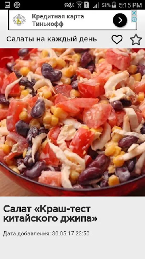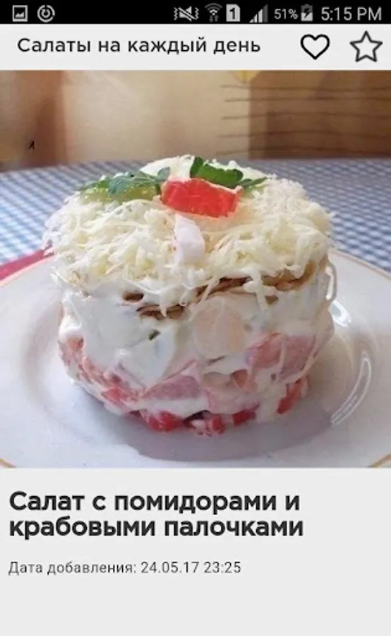 Application "Recipes for salads" contains a variety of recipes with step by step photos and descriptions of salad preparation process.