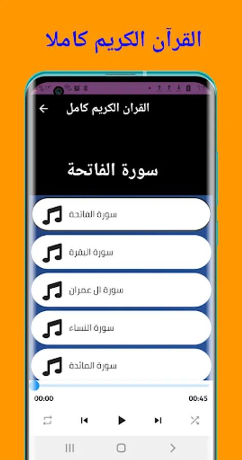 The application contains the entire Holy Qur’an with the voice of the most beautiful reciters