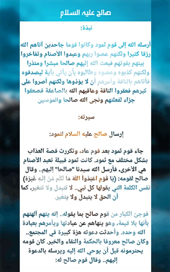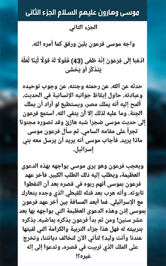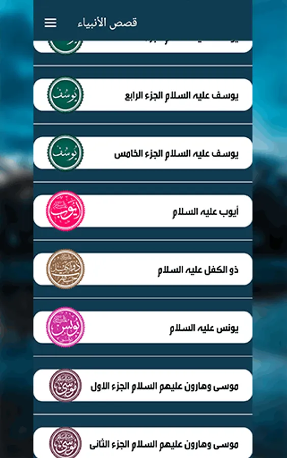 يحتوى التطبيق على جميع قصص الأنبياء عليهم السلام كاملة بداية من أدم عليه السلام حتى خاتم المرسلين محمد صلى الله عليه و سلم .