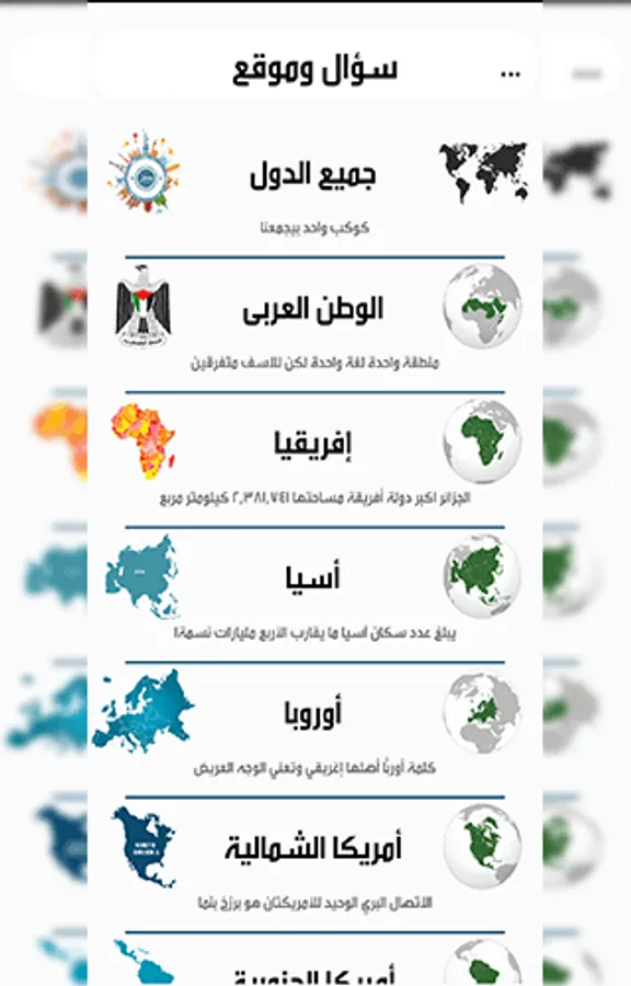 General information application - questions geography and country locations It tests your geographical information and the extent of your knowledge of the locations of the countries of the world and maps where the application contains all maps of the countries of the world and a map of one of the countries is displayed with the question about which country owns this site