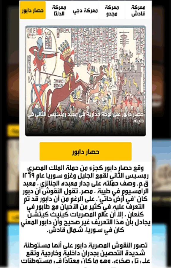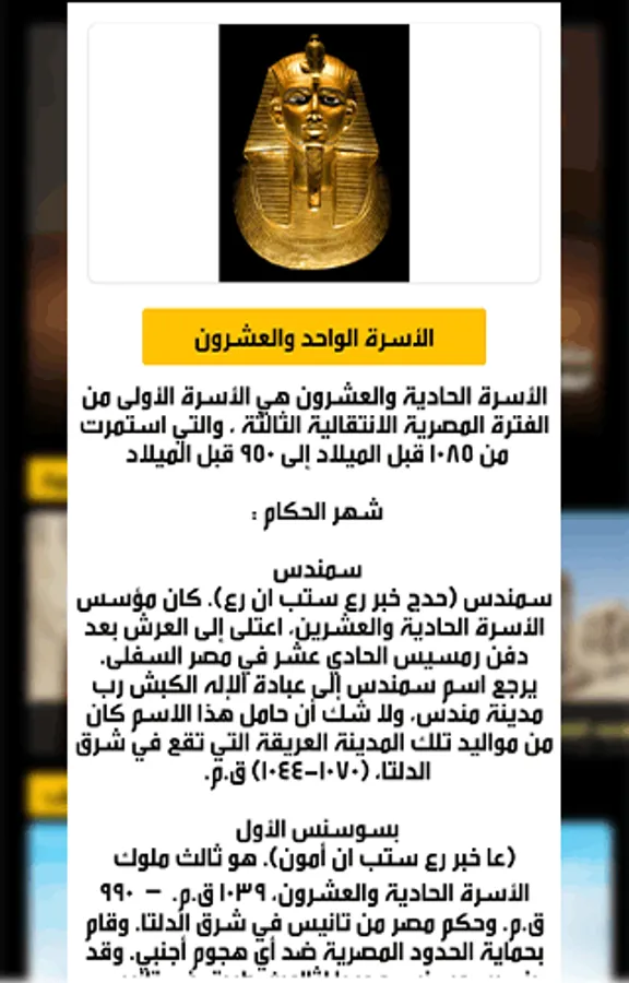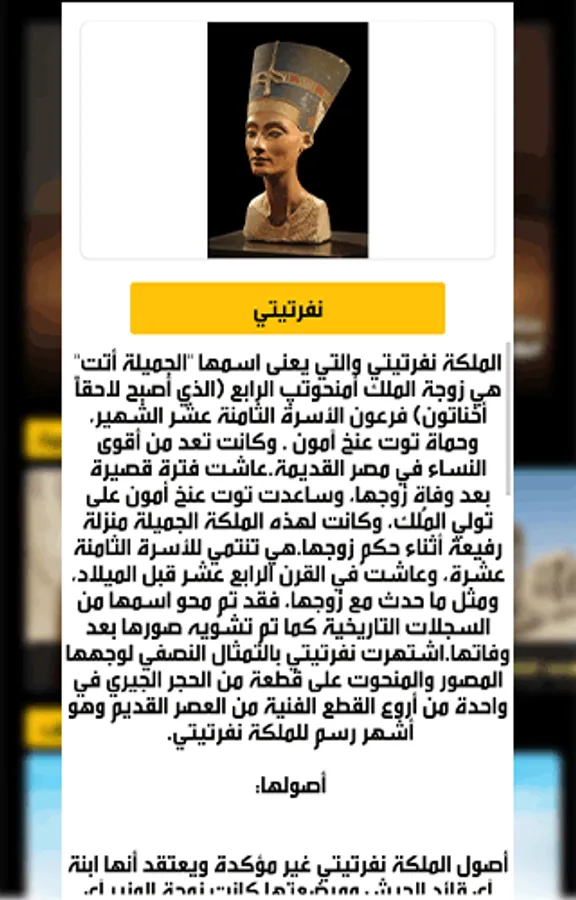 A journey into the history of ancient Egypt in various fields and knowledge of ancient history closely, as the application contains many details in the life of the ancient Egyptian, whether he is a king or a citizen. The application includes many topics with display pictures